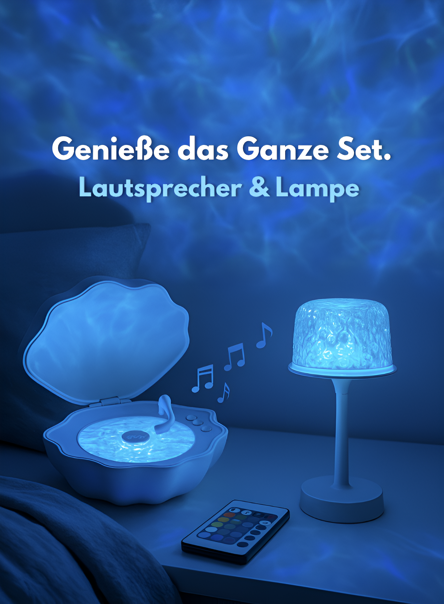 Kombiniere unsere berühmten Lumena-Lampen mit unserem Shell- oder Retro-Wave-Lautsprecher und genieße eine Mischung aus Ozeanlichtern und entspannender Musik.