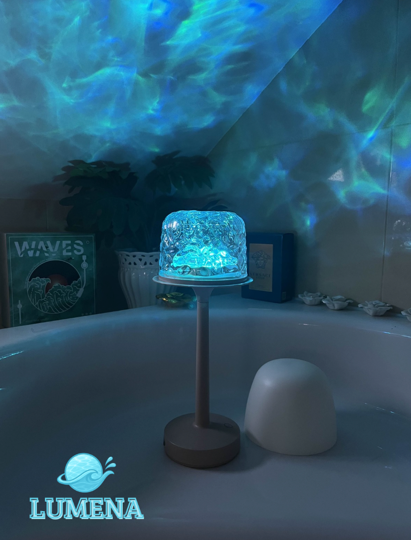 Fühle dich wie unter Wasser mit dem Ozean-Lichteffekt der Lumena-Lampe. Je mehr Lampen in deinem Raum sind, desto realistischer wirkt es!