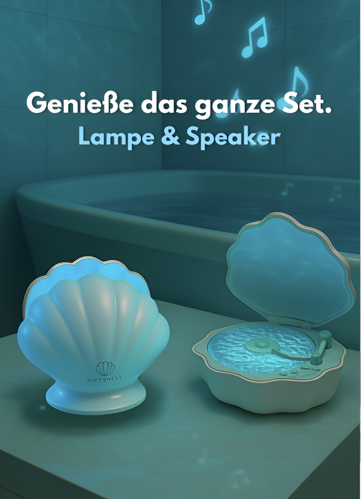 Kombiniere unsere berühmten Lumena-Lampen mit unserem Shell- oder Retro-Wave-Lautsprechern und genieße eine Mischung aus Ozeanlichtern und entspannter Musik.