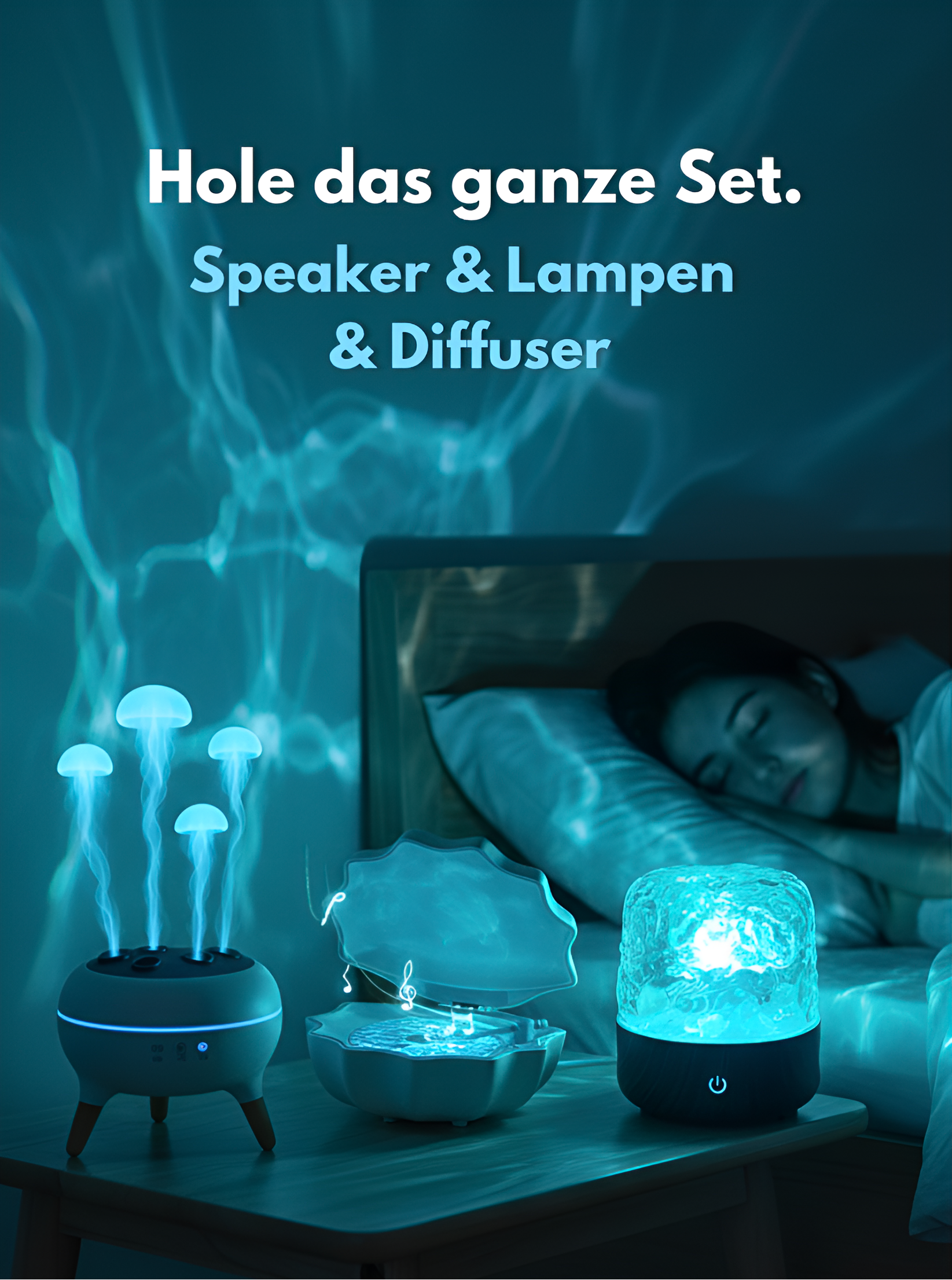Fühle dich wie unter Wasser mit dem Ozean-Lichteffekt, während du deine Lieblingssongs hörst! Eine Lampe & Lautsprecher in einem.